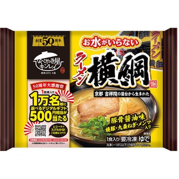 京都発祥の人気店『ラーメン横綱』監修商品です。スープ麺具が一つになっていますのでお鍋に入れて温めるだけでお召し上がりいただけます。<スープ>豚骨などから炊き出したスープに醤油だれを合わせた濃厚でコク深い味わいです。<麺>濃厚なスープがよく絡むコシのある細麺です。<具材>直火焼チャーシューメンマ九条ねぎを盛り付けました。