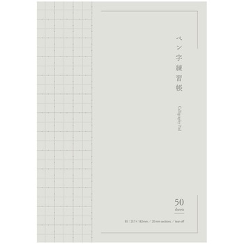 書道家 大江静芳先生監修、大人のためのペン字練習帳へんとつくりの比率を意識して練習出来るよう、20mm×20mmのマス目を3分割するドットが入っています。縦横どちらでも使用可能。中紙はコクヨを代表するロングセラー商品「書翰箋」の原紙を採用。水性インクボールペンで書いても速乾性が高いので、ペン字の練習に最適。表紙巻き製本なので、表紙を折り返しても浮きが少なく、省スペース且つ一枚の用紙に書くように使えます。はぎ取って使う事もできるので、厚い下敷きでも使いやすいです。大人が使うのに適したシンプルで飽き