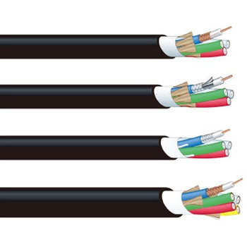 複数の同軸ケーブルを1本のケーブルにまとめ、ビデオ機器周辺の配線をスッキリ。信号識別のため、各ユニットごとに中間シースの色が変えてあります。回線間の長さの差異による位相補正の作業を軽減。撚り線構造の内部導体と高密度編組シールドで、耐久性に優れます。シースは柔らかく丈夫なPVCを採用しました。V-EMシリーズはシース材にJCS規格で定義されたエコ材料を使用したエコケーブルです。