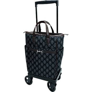 アルミフレームで軽量、持ち運びに便利。横押しタイプ。ブレーキレバーを握ればブレーキ、下に押し下げると駐車用ストッパの便利な手元2WAYブレーキシステム。前輪キャスター付で方向転換もスムーズ(固定、左右各50°の2WAY)。バッグは開け口が広く荷物の出し入れが簡単、保冷仕様で買い物にも便利。前と両サイドに便利なポケット付。※歩行を補助するシルバーカーではありません。