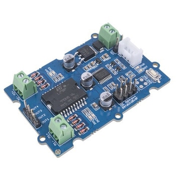 2チャンネルのモータードライバ制御ボード。STM32マイコン(STM32F030F4P6)を使用してサーボモータやステッピングモータを動作させる2チャンネルのモータードライバ制御ボードです。ドライバICには、STMicroelectronics社製のL298Pを使用しています。インターフェースはGroveコネクタで接続します。I2Cアドレスは選択可能で、0×00から0×0Fに変更できます。デフォルトのI2Cアドレスは0×0Fです。各チャンネルの時計回りに緑色のLEDが、反時計回りに赤色のLEDが点灯します。