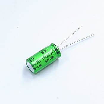 Electrolytic decoupling capacitors 100uF/25V. These capacitors are great transient/surge suppressors. Attach one between the power and ground of your project to ensure smooth power delivery. High quality radial electrolytic capacitors.