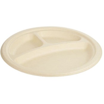 竹とバガス(サトウキビの搾りかす)の混合素材からできた、植物由来の業務用・使い捨てプレート容器。しっかりとした厚みがあるため、アウトドアやパーティーなどさまざまなシーンに対応。耐油耐水性。電子レンジ対応。※内側にコーティング加工がされていない為、米飯など粘り気のある内容物を直接入れると、材質の特性により食品に素材が付着する場合がございます。