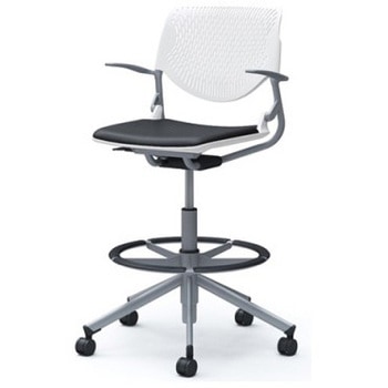 ルナ 5本脚ハイチェア 肘付 背パッド無 ホワイトシェル シルバーフレーム ナイロン双輪