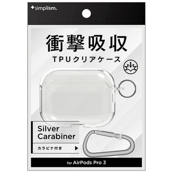 AirPods Pro 3 衝撃吸収 クリアTPUケース カラビナ付き シルバーカラビナSimplism