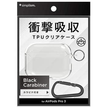 AirPods Pro 3 衝撃吸収 クリアTPUケース カラビナ付き ブラックカラビナSimplism