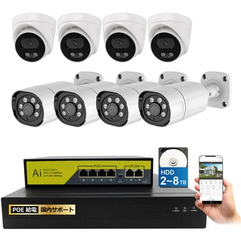 400万画素PoEタイプNVR防犯カメラセット バレットカメラ6台 ドームカメラ2台、HDD8TB付きブロードウォッチ