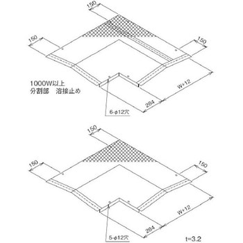 カバーの長さの調整用に使用します。※固定用穴は現場加工の事(Φ8穴)