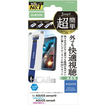 AQUOS sense10 / sense9 ( SH-53F / SH-53E ) ガラスフィルム 高透明 ブルーライトカット 簡単貼り付けツール付エレコム