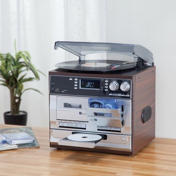 レコード・カセットを簡単にCD録音!あなただけのオリジナルCDが作成できるマルチプレーヤー。CDデッキ・レコードプレーヤー・ダブルカセットデッキ・ラジオ(AM/ワイドFM)SP盤・EP盤・LP盤1台4役昔よく聴いていたレコードやカセットテープの想い出の曲などを音質劣化しにくいCDへ録音できます。カセットからカセットへの録音も可能で、大切な音源のバックアップや自分だけのCD作成に大活躍するマルチオーディオプレーヤーです。コンパクトな一体型なので面倒な配線・接続は不要です色々な音源からダイレクト録音:カセット・レコード・外部音声入力からCDに簡単保存!カセットにも。※USBメモリーカード・SDカードにも録音可能。話題のワイドFMに対応!カセットからカセットへの録音が可能。SDカード・USBメモリにも録音可能リモコン付き1年間保証書付き