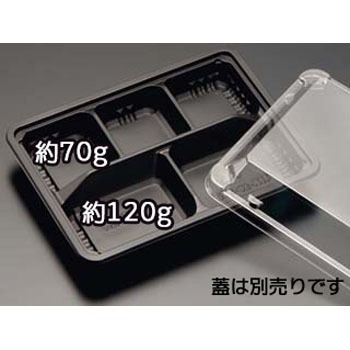 5仕切タイプの角型の弁当容器。様々なメニューに使用できるシンプルな形状です。※本体のみ、蓋は別売りです。