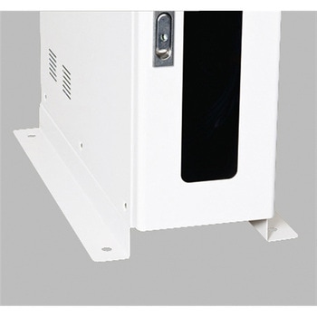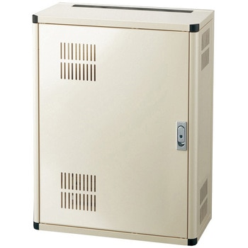 LAN用機器収納ボックスです。設置方法として、床面・壁面共に可能です。背面のケーブル口はメンテナンスがしやすい、切れ込みタイプになっています。床面設置の際の転倒防止フラットバー付きです。セキュリティ強化のための鍵付です。内部の様子が扉を閉めたままでもわかるアクリル窓を採用しています。上下をさかさまにして扉が開く向きを変えることができます。マウントアングルは65mmピッチ4段階で移動ができます。(扉に一番近いところに取付けた時の有効内寸は330mmです。)放熱用ファン(CP-FANS/SHAS)がオプションにて取り付け可能です。EIA規格に準拠し、ユニバーサルピッチ(ケージナット対応)を採用しています。