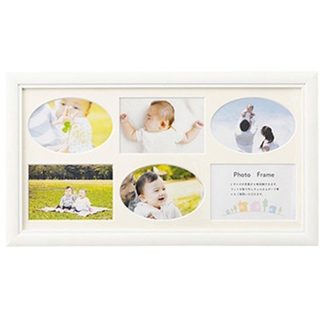 6枚の写真を入れられるマット付き。インテリアに馴染むホワイトフレーム仕様。樹脂製フレームで壁掛けでも安心の軽さ。