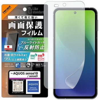 AQUOS sense10/sense9 / PETフィルム ブルーライトカット 反射防止 衝撃吸収 抗菌・抗ウイルス 平面保護 指紋防止レイ・アウト
