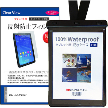 防水タブレットケース AIWA JA2-TBA1002 10.1インチ 対応 と 反射防止 保護フィルム セット IPX8 ストラップ付き 互換品メディアカバーマーケット