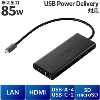 USBポート数【ダウンストリーム】1:USB Type-Cポート<USB 5Gbps(USB3.2(Gen1))>×1・供給電力値:11W(5V/2.2A) ※データ通信専用。映像出力には対応していません、【ダウンストリーム】2:USB Type-Cポート×1<最大出力85W> ※充電専用USB Power Deliveryポート、【ダウンストリーム】3:USB-Aポート<USB 5Gbps(USB3.2Gen1))>×2・2ポート合計:13.5W(5V/2.7A)※本製品はUSBポートを増設するための製品です。本製品を使用してスマートフォン・タブレットを充電することはおすすめできません。